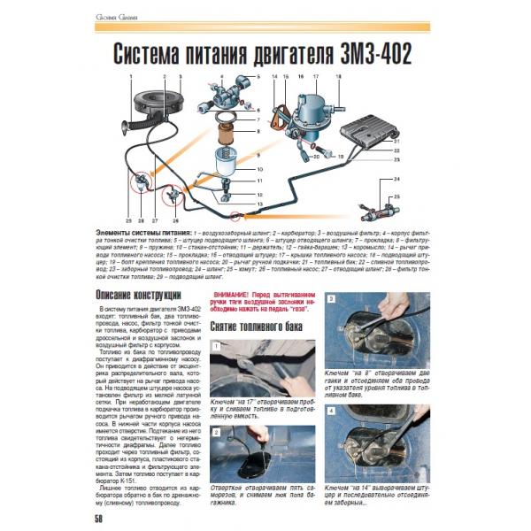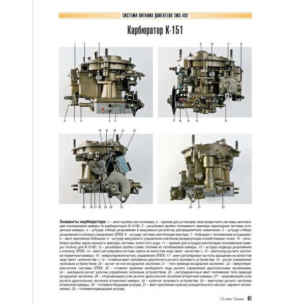 Полноцветное руководство по ремонту, техническому обслуживанию и эксплуатации автомобиля ГАЗ-3110, с двигателями ЗМЗ-402 (2,5 л.) и ЗМЗ-406 (2,3 л.), с подробными фотографиями пошагового процесса ремонта. Имеются перечни возможных неисправностей и рекомендации по их устранению, а также указания по разборке, сборке, регулировке и ремонту узлов и систем автомобиля с использованием готовых запасных частей и агрегатов. Способы ремонта подобраны в расчете на использование стандартного набора инструментов в условиях гаража, а фотоматериалы подготовлены в процессе разборки и сборки автомобилей высококвалифицированными автомеханиками. В процессе описания ремонтных операций даны полезные советы, составленные на основе практики опытных автомобилистов.